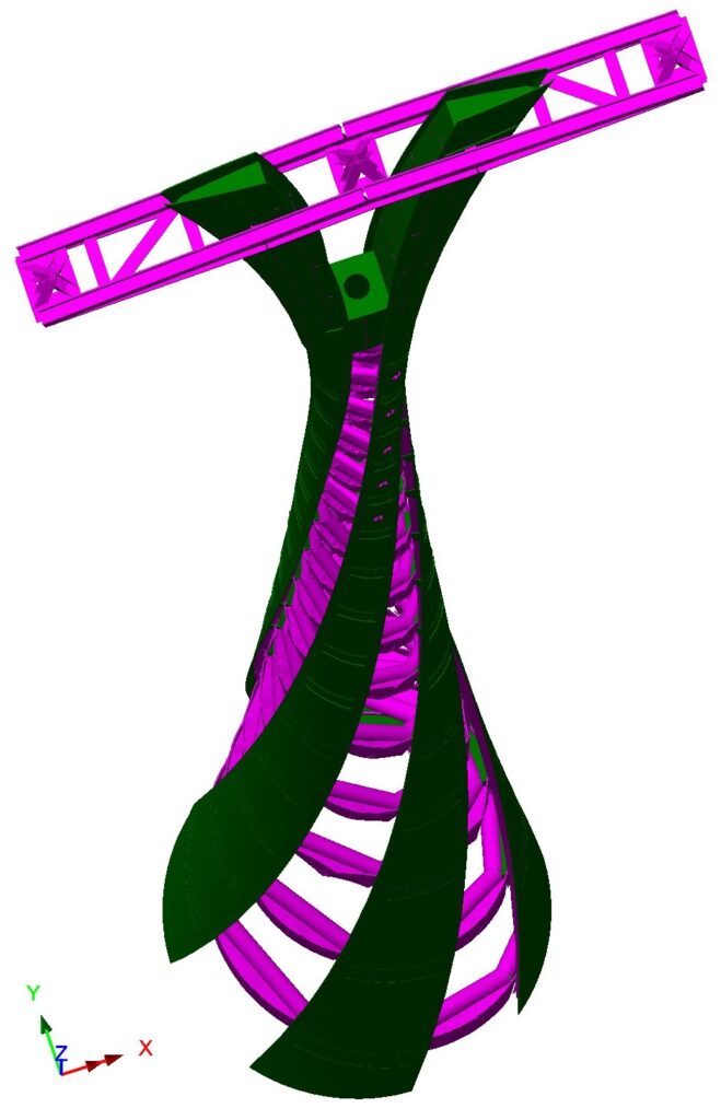 It was the connections between the architectural ribbons and the hidden counter-spirals, made of smaller hollow sections, that turned out to be crucial to the behaviour of the towers. This could only be understood with detailed shell element models, whereas the design checks to the Eurocode required simplified beam element results. LUSAS provided the tools to correlate these two, offering the best of both worlds.